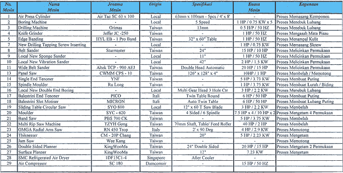 Latar Belakang | Carta Organisasi | Skill Pegurusan/ Pekerja | Senarai Nama Mesin/ Jentera